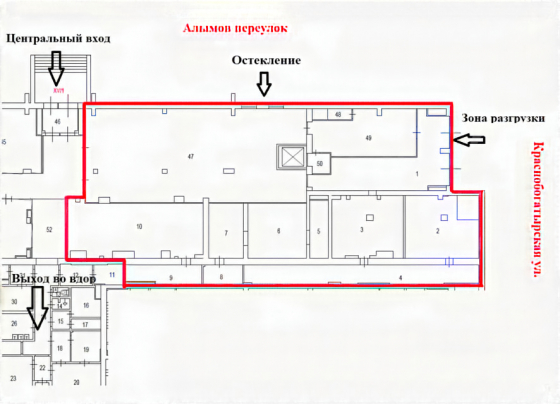Помещение имеет центральный вход с улицы 1й линии, а также вход со двора с зоной разгрузки, удобные подъездные пути для крупногабаритного транспорта.